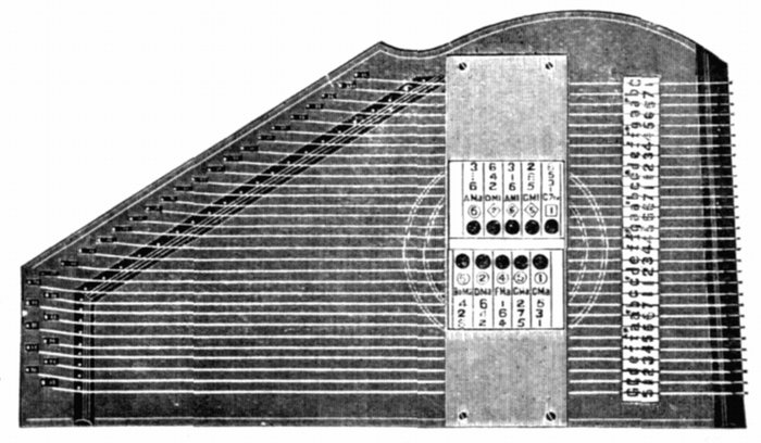 | 52¾. | Twenty-three strings, five bars, producing five chords | 3 20 |