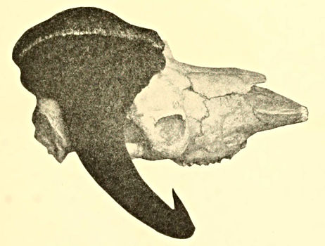 To the sum of our knowledge about the Oreamnus montanus, the gift of a subspecies has lately been offered; but acceptance of this gift would at present, I think, be premature. It depends on one’s idea of the number of facts needful in daily life to justify a generalization. For instance, if you should read in the paper that one person died of diphtheria last week in New York, it would not prevent your going to that city; but if you read that five hundred had died in a week, you might decide not to take your children there for the season,—and this would be the result of a justifiable general[Pg 272]ization. The rule is nowise different in genuine science. This new variety of goat has been based upon a single specimen, and only the dried skull at that! Because the horns were a few inches longer and spread a few inches wider than the average, and because there were certain differences in measurement of the jaw, is scarce adequate proof that these variations were not a distortion, congenital or the result of accident. We have seen people with squints and with club-feet; we have also been to the circus, yet we do not make subspecies for the Kentucky giant and the bearded lady. But that little ache for self-perpetuation, for some sort of permanence in this forgetting world, throbs in many hearts, and since we are all trying to affix our names to something that will hand them down to the succeeding generations, why not tie them to Oreamnus and Ovis? And so, reader, you have the pleasing vision of our zoölogists, riding down to posterity upon the backs of sundry subspecies of goat and sheep.