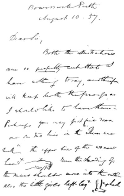In preparing the contents of this book it would have been impossible to give the many specimens of our work but for the kind and liberal spirit with which our requests were responded to by the various publishers who had entrusted us with their commissions from our very earliest days. Our best thanks are due, in the first instance, to Messrs. Adam & Charles Black, for the loan of two engravings for the "Abbotsford Edition of Scott's Novels," which were amongst our first important works; the Art Union of London, for a specimen of Kenny Meadows'; Messrs. Macmillan, for specimens from "The Ingoldsby Legends," "Tennyson's Poems," and "Alice in Wonderland"; Messrs. Bradbury & Agnew, for selections from Richard Doyle's work; Messrs. George Routledge & Sons, for specimens from "Gilbert's Shakespeare" and various "Fine Art Books"; Messrs. Herbert Virtue & Co., for several from Millais' "The Parables of Our Lord" and "Dalziel's Bible Gallery"; Messrs. Blackwood & Son, for "Lays of the Scottish Cavaliers," by Sir J. Noel Paton; Messrs. James Nisbet & Co., for "Lays of the Holy Land;" Messrs. Longman &[Pg ix] Co., for Tenniel's "Lalla Rookh"; Messrs. Smith, Elder & Co., for "Framley Parsonage" and the Cornhill Magazine; Mr. James Hogg, for "London Society"; Messrs. D. Appleton & Co., for "Poems by W. Cullen Bryant"; Mr. John Hogg, for "Poems by Robert Buchanan"; Messrs. Chapman & Hall, for many illustrations to the works of Charles Dickens; the Proprietors of the Graphic, for "The Sisters," by G. J. Pinwell; and to Messrs. Ward and Lock, for "Dalziel's Arabian Nights" and "Dalziel's Goldsmith."