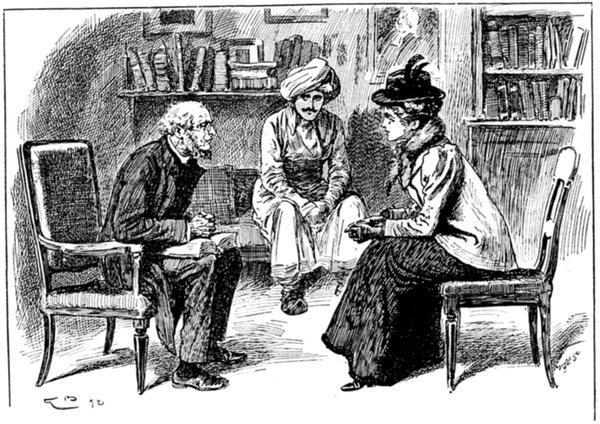 The immediate cause of this was no less than the falling of Master Percy, the youngest of my pupils, into the mill-race, with imminent danger both to his life and to mine, since I had to risk myself in order to save him. Dripping and exhausted—for I was far more spent than the child—I was making for my room when Sir John, who had heard the hubbub, opened the door of his little study and asked me what was the matter. I told him of the accident, but assured him that his child was in no danger, while he listened with a rugged, immobile face, which expressed in its intense eyes and tightened lips all the emotion which he tried to conceal.