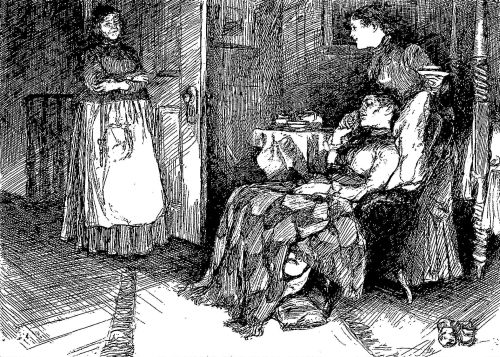 Then patting Tim on the head, the good woman went down stairs to attend to her household duties.