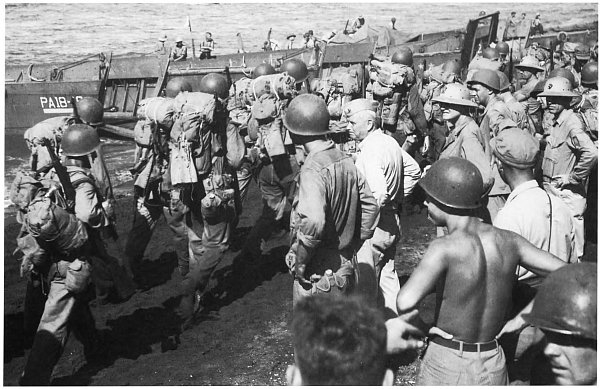 Unloading supplies and getting them in usable order on the chaotic beaches was a major problem. Seabees, sailors, and Marines all4 turned to the task, with 40 percent of the entire landing force laboring as the shore party. They sweated 6,500 tons of supplies ashore.