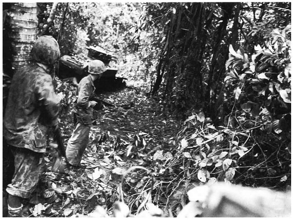 In spite of the chaos, the intensive training of the Marines took hold. Individuals and small groups moved in to assault the enemy, reducing bunker after bunker, dropping grenades down their ventilators. For an hour, the situation was in doubt.