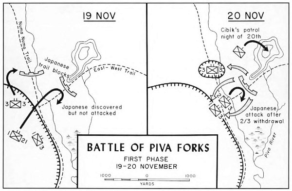 Back on Bougainville, following the landing, the days D plus 1 to D12 plus 5 saw the initiation of Phase II of the operation, involving shifting of units’ positions, reorganizing the shambles of supplies, incessant patrols, road building, the beginning of the construction of a fighter airstrip, and the deepening of the beachhead to 2,000 yards.