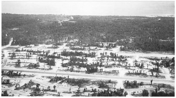 In spite of all these problems, the assault battalions had, by the end of D-Day, reached their objectives on the Initial Beachhead Line, 600–1,000 yards inland. One enormous unexpected obstacle, however, had now become painfully clear. Available maps were nearly useless, and a large, almost impenetrable swamp, with water three to six feet deep, lay right behind the beaches and made movement inland and lateral contact among the Marine units impossible.