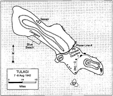In answer to Edson’s repeated requests, the rear echelon of his battalion (less the 81mm mortar platoon) finally joined up with him on 3 July in Samoa. The entire unit then moved on to New Caledonia. The 1st Raiders received definitive word on Watchtower on 20 July. They would seize Tulagi, with the 2d Battalion, 5th Marines, in support. The 1st Parachute Battalion would take the conjoined islets of Gavutu-Tanambogo. The 1st Marine Division,10 less one regiment in reserve, would capture the incomplete airfield on Guadalcanal.