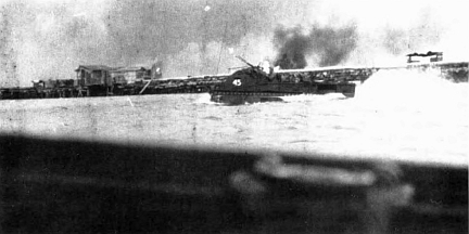 Other Japanese forces in the Gilberts exacted a high toll among the invasion force. Six Japanese submarines reached the area during D+2. One of these, the I-175, torpedoed the escort carrier Liscome Bay just before sunrise on 24 November off Makin. The explosion was terrific—Admiral Hill saw the flash at Tarawa, 93 miles away—and the ship sank quickly, taking 644 souls to the bottom.