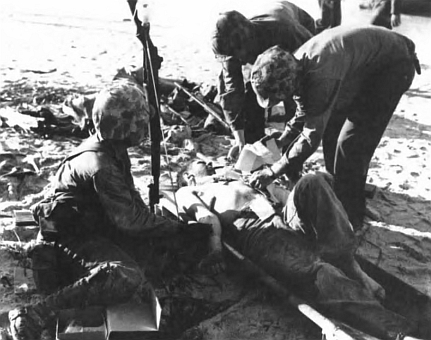 Shoup hoped enough LVTs would survive to permit wholesale transfer-line operations with the boats along the edge of the reef. It rarely worked. The LVTs suffered increasing casualties. Many vehicles, afloat for five hours already, simply ran of gas. Others had to be used immediately for emergency evacuation of wounded Marines. Communications, never good, deteriorated as more and more radio sets suffered water damage or enemy fire. The surviving LVTs continued to serve, but after about 1000 on D-Day, most troops had no other option but to wade ashore from the reef, covering distances from 500 to 1,000 yards under well-aimed fire.