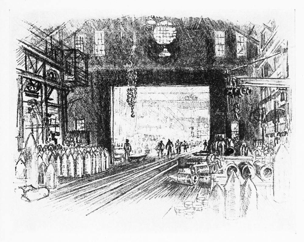 THESE Pits which I have drawn in Europe and America have the greatest individuality of all the processes of war industry. The buildings are most impressive, towering, windowless, sombre without, very spacious within, filled with strong shadows and strange shapes.