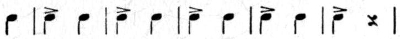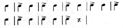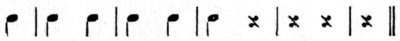 The first syllable of "Jesu" is the anacrusis; the measure of the metre begins with the first accent. Whether this system of verse-notation or that of the usual scansion be followed, the meaning of the changing forms will be made plain. The system of verse-notation will be found more satisfactory in the metrical study of the poem. The second form of primary rhythm—that based on three beats in the measure—[20]is effectively used. We find it in the Song of the Demons: