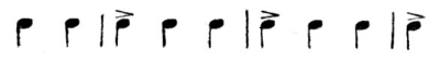 [11] As suggested in the Introduction, the musical character of the verse of "The Dream of Gerontius" is brought out more and more by careful study of the changes of the meaning of the poem and their expression. "The Dream" is a series of lyrics,—each lyric voicing its own feeling and sensitively tuned to that feeling. According to the scansion most in use in English, the first supplicating lyric may be classed as in pentameter iambic. Gerontius is yet in the body, and the rime, used solemnly, marks a difference—which has a delicate symbolism—between his utterances in the body and his utterances when his soul has left the body. What we call blank verse is used by the Spirit—rime disappears, but the rhythm remains the same. Using verse-notation, we find five accented notes in each line, if we consider the lines at all. There are two quarter-notes in each bar, which may be written as