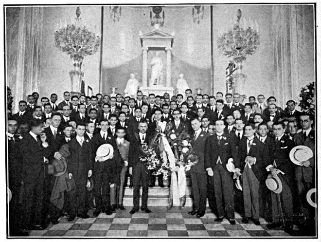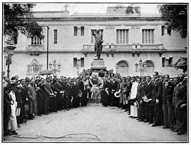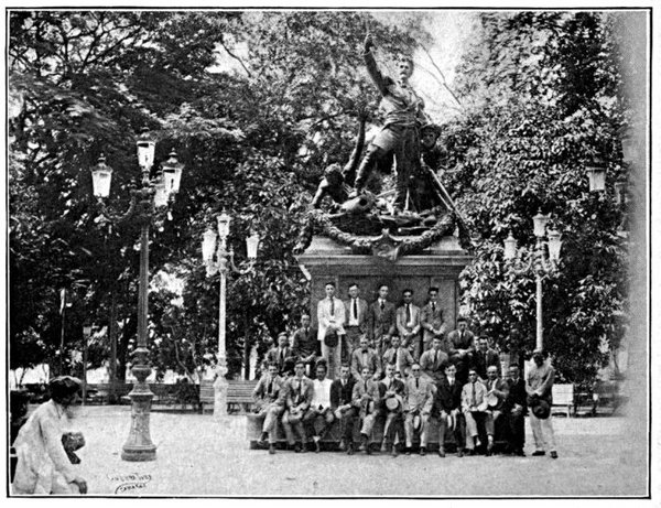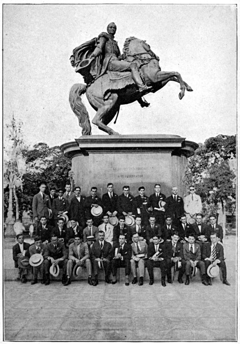 Venezuelan and Georgetown Students Fraternizing at the Foot of Statue of Simón Bolívar