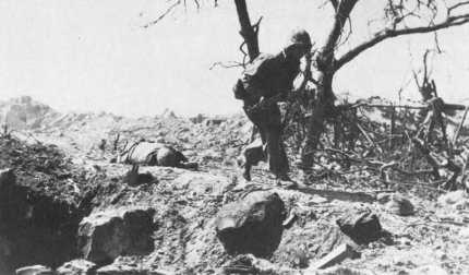 The infantry, heavily laden, found its own “foot-mobility” severely restricted. In the words of Corporal Edward Hartman, a rifleman with the 4th Marine Division: “the sand was so soft it was like trying to run in loose coffee grounds.” From the 28th Marines came this early, laconic report: “Resistance moderate, terrain awful.”