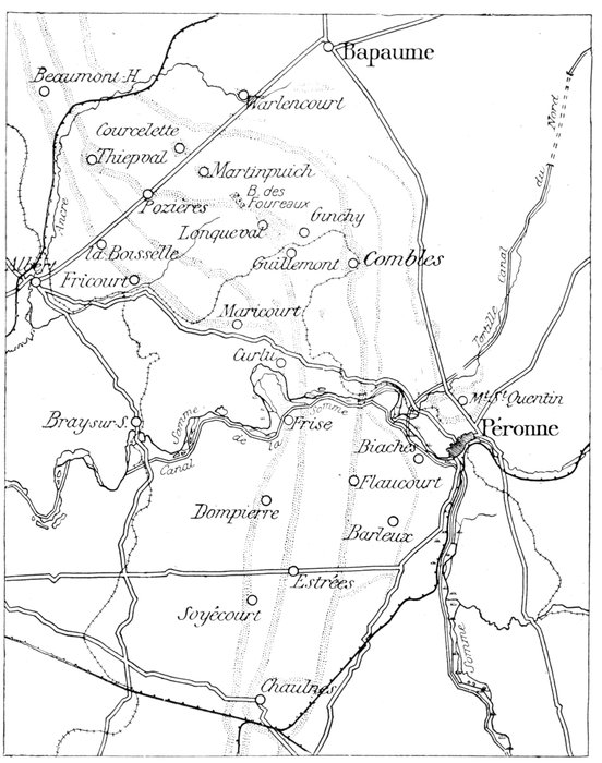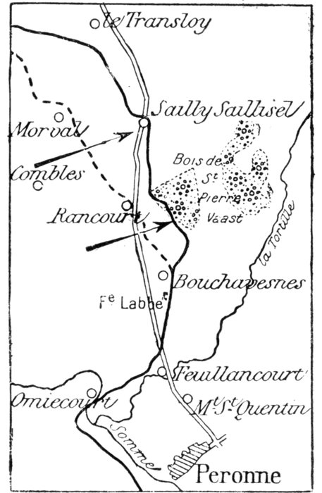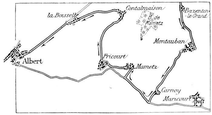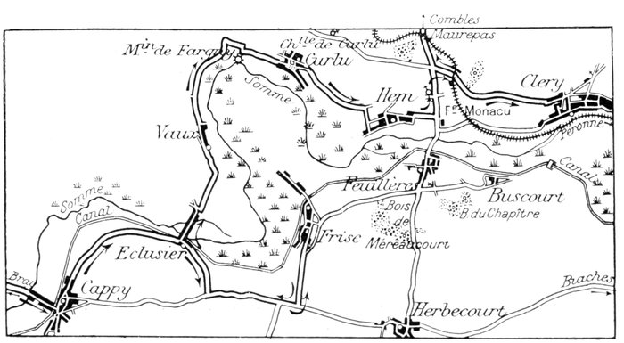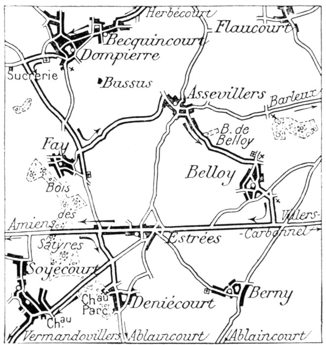 Lying at an important junction of several roads, Lihons was already in enemy hands when the front-line trenches were made.
