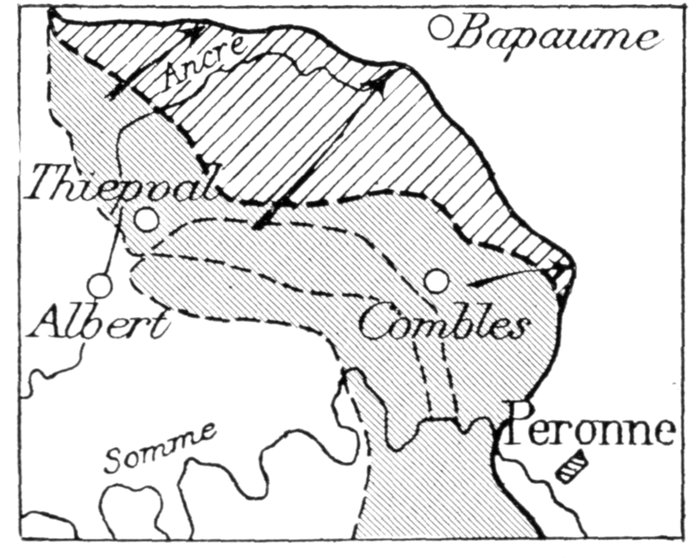 In spite of the terrible strain France was undergoing at Verdun, the number of troops left before that fortress, under the command of General Pétain, who had thoroughly consolidated the defences, was reduced to the strictest minimum, and the 6th and 10th Armies, under the command of General Fayolle and General Micheler, respectively, were thus able to collaborate with the British in the Somme offensive.
