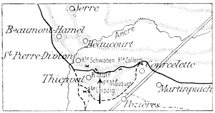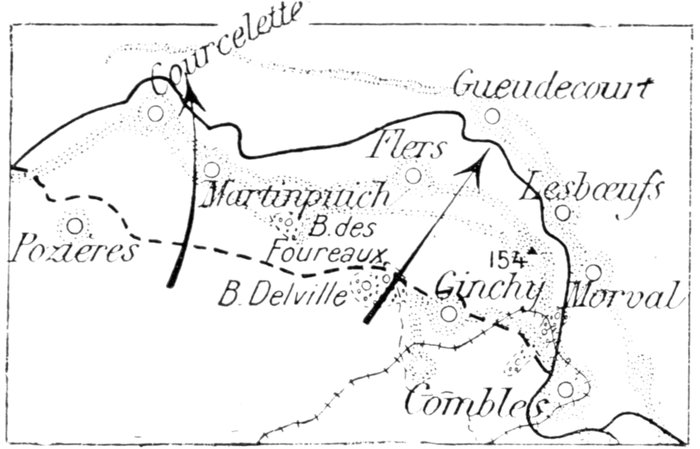Within a few days of the enemy's formidable onslaught of June 23 against the Thiaumont—Vaux front, in which seventeen German regiments took part (see the Michelin Guide: "Verdun, and the Battles for its Possession"), the Allied offensive was launched (July 1).