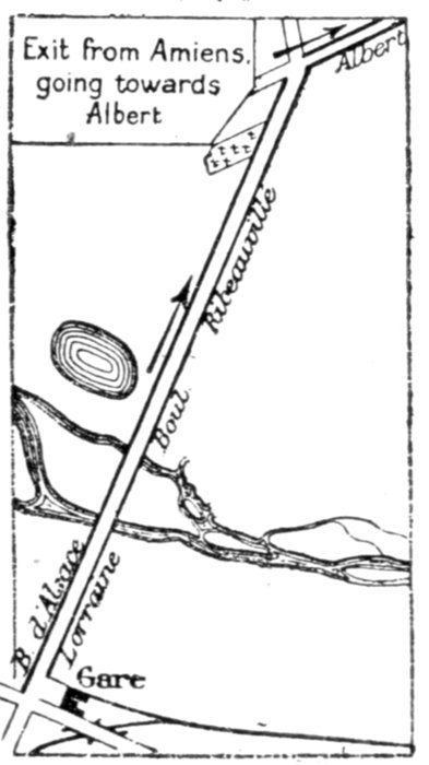 A short distance before Longueau, G.C. 201 joins N. 35, which take to the right. Amiens is entered by the Chaussée Périgord.