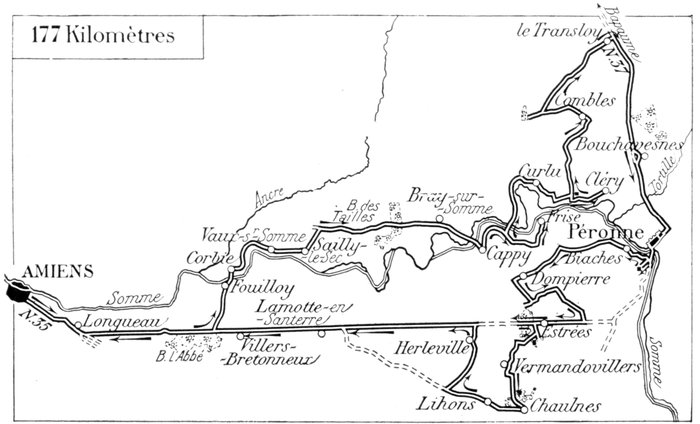 When following Itineraries described in this Guide, it is advisable not to rely on being able to obtain supplies, but take a luncheon basket and petrol with you from Amiens.