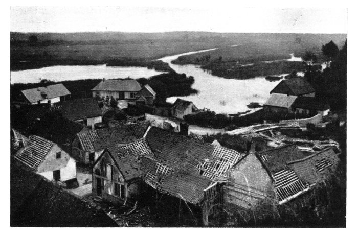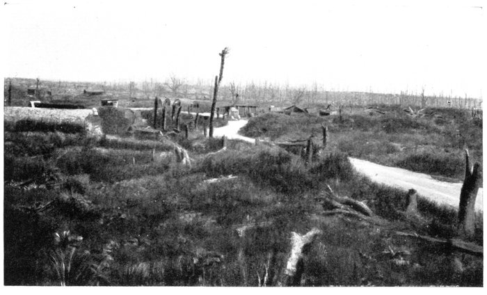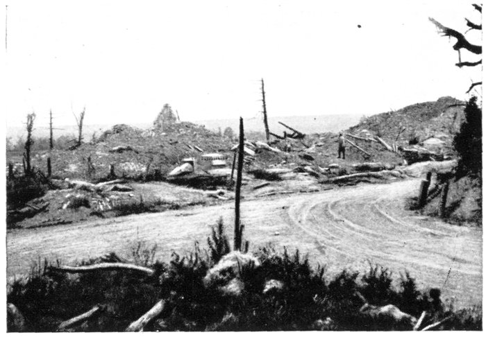 The village was flanked on the north and north-west by dense woods, which were entirely destroyed by the bombardments. These woods were full of fortified works, trenches and posts for machine-guns, protected by wire entanglements.