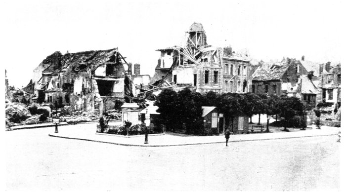 Lihons, a small country town, the streets of which—bordered with low houses—ran in all directions from a large, central square, was quickly reduced to ruins. The houses fell down one after the other, and the church suffered irreparable damage.