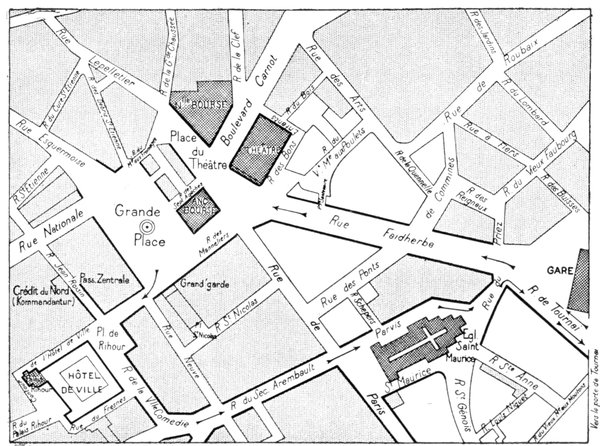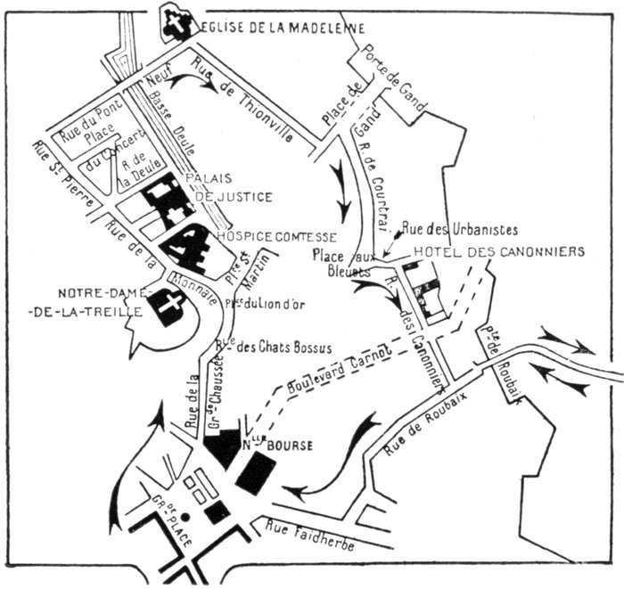 At the station, take the Rue de l'Alma on the right, then turn to the left into the Rue de Tourcoing, which leads straight to Tourcoing.[Pg 62]