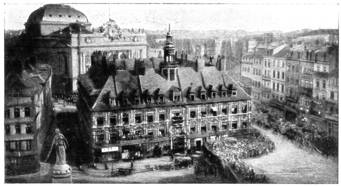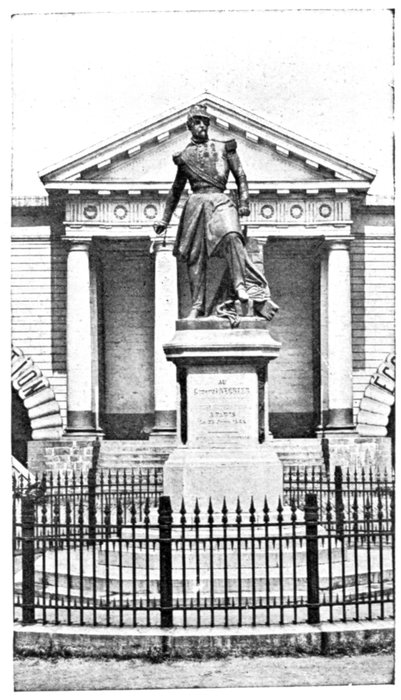 In the Franco-German War of 1870-1871, Lille remained outside the battle area, and the only local souvenir connected with that struggle was a visit from M. Antonin Dubost (now Président of the French Senate) in October, 1870. Leaving Paris, which was besieged, in a balloon named "The Universal Republic," he landed between Rocroi and Mézières, going thence on foot to Belgium, and from there to Lille. He was received by the Commissary of the Government for National Defence (Mr. Testelin) (p. 50) and General Bourbaki, who had escaped from Metz, and harangued the people from the steps of the Grand' Garde (Place de la Bourse, p. 29).