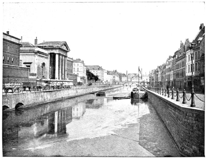 The new Town Hall is a fine building, with a frieze representing scenes[Pg 61] from the local industries. A wing on the right serves as the Stock-Exchange, while another on the left contains the town's records.
