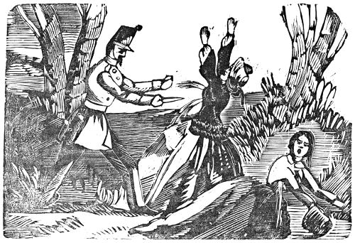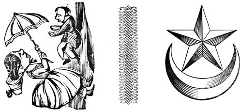 With regard to illustrations, a ballad-printer is in the habit of buying up old wood-cuts which have been engraved for any other works, and of applying them to his own purposes; disregarding alike their age, rudeness, and condition. Most of those adopted are repeatedly employed over and over again. The printers of “broadsides” seldom care whether an ornament of the kind used is, or not, appropriate to the subject of the ballad, so long as it is likely to attract attention. Many examples will be found in this collection, and we are indebted to Mr. H. Disley and others for the use of the same.