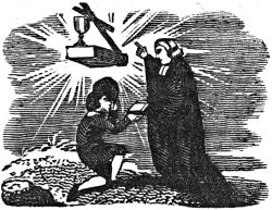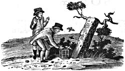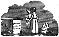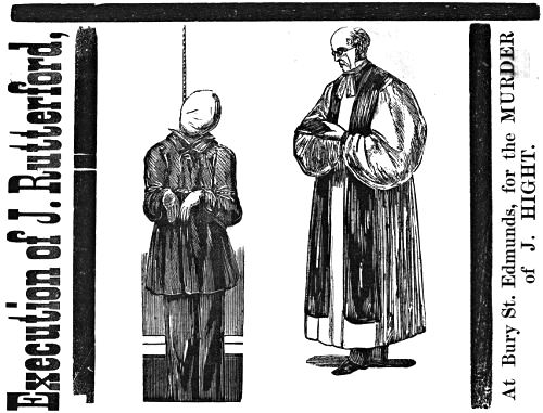 At length Catnach, from the possession of greater capital and business acumen, became—to use the words of our informant—“the Cock of the Walk,” and continued so until his retirement in 1839. In his Will—or Last Dying Speech—which was proved April, 1842, “James Catnach, of Dancer’s Hill, South Mimms, in the county of Middlesex, gentleman, formerly of Monmouth Court, Monmouth Street, printer, bequeathed the whole of his estate to his sister Anne, the widow of Joseph Ryle, in trust, nevertheless, for her daughter, Marion Martha Ryle, until she obtain the age of twenty-one years. Witnesses—William Kinsey, 13, Suffolk St., Pall Mall, Solr. Wm. Tookey his clerk.”