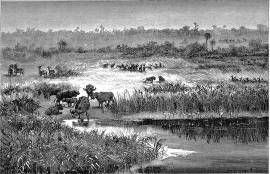 Zambesi. — Die Schilfrohrwälder an den Ufern des Zambesi und das