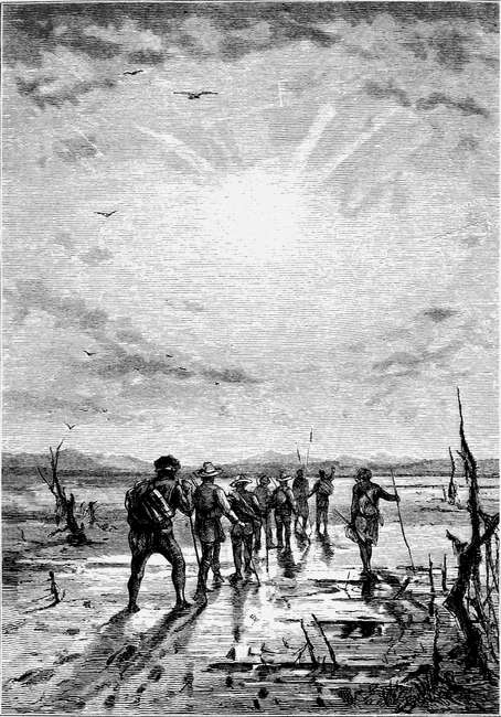 Und das war er wirklich. Die Luftwurzeln der Bäume erstreckten sich in mächtigem Umfang Hunderte von Schritten weit in die Umgebung hinaus, Rankengewächse flochten grüne, hängende Mauern, und Sumpfstellen nötigten oft zu weiten, zeitraubenden Bogen.
