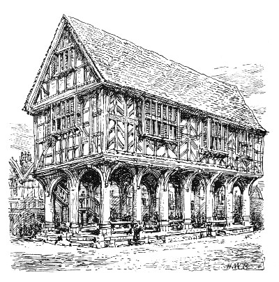 When the villages increased in size and became important, usually in the 13th century, many of them claimed municipal privileges, were called towns, and erected "town halls," which are often highly-picturesque structures. That at Ledbury, Herefordshire, is an interesting example which probably dates from the 16th century. They are generally supported upon pillars so as to leave the ground-floor an open, covered space which served as a market.