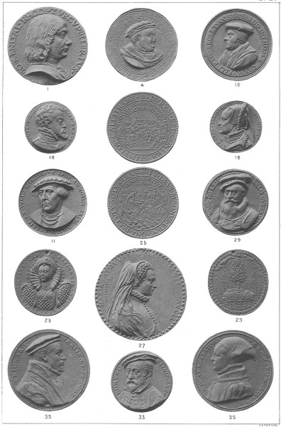 With very few exceptions, there are no medals of interest in the English series dating before the reign of Henry VIII. During the fifteenth century a few counters were struck, which directly or indirectly refer to events in English history; but these are for the most part of French work, and the medal which is placed first in this Guide, although bearing the portrait of an Englishman, John Kendal, is undoubtedly of Italian work, and was probably executed at Venice. The Dassier series of the early sovereigns, being a production of the last century, cannot be said to have a place in the early medallic records of this country, and is not included in this exhibition. The series of English medals may therefore be said to commence with the reign of Henry VIII., of which period, besides a number of interesting jetons and medalets, there are some well-executed medals of the King himself, such as No. 3, his portrait evidently after a painting by Holbein, another recording his supremacy over the Church (Nos. 4—5), and several remarkable badges. There are also other medals, chiefly personal, which bear the portraits of Sir Thomas More, Thomas Cromwell Earl of Essex, Anne Boleyn, and Michael Mercator, himself a medallist as well as a diplomatist. The short reign of Edward VI. gives but few examples, of which two are exhibited, one bearing only a portrait of the king, which appears to be a cast in lead from a silver plate; and the other, his coronation medal, the type of which was taken from the "Head of the Church" medal of Henry VIII. The only other interesting works of this reign are the Christ's Hospital badges and medalets, the School having been founded by Edward in 1553. Of Mary there is also little worthy of note beyond some excellent portraits of herself and Philip, and a medal which refers to the condition of England during her reign. These were executed by Trezzo at Madrid, and are the first signed medals of the English series. The illness of Elizabeth in 1572, her struggle with the Papal party, as well as her acceptance of the protection of the Netherlands, and the defeat and destruction of the Spanish Armada, afforded subjects for commemoration. The medals relating to the destruction of the Armada are certainly among the finest pieces ix ever produced in England, and are good examples of the art of the time. The period of Elizabeth ends with a series of medallic portraits by Stephen of Holland, most of which bear the date 1562, and all apparently executed about that year.