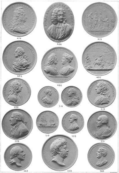 Medals serve for two purposes, for the illustration of history and as records of the contemporary state of art. Some series, like that of Italy, have more interest for their artistic merit than their historical import. This may also be said in a great degree of the French medals; but in the English and Dutch series the interest lies rather in the historical value than in the artistic qualities, the medallic art of neither country attaining at any time any high degree of excellence. The medals which are described in this Guide, although to some extent examples of contemporary art, must therefore be considered interesting chiefly as records and illustrations of the history of England for a period of over three hundred years. For this reason a classification of the medals by artists has not been attempted, and a simple chronological order has been preferred. This, however, has been relaxed in a few instances, as in that of the personal medals, which for the most part are placed at the end of the reign in which the persons portrayed flourished; and in a few cases where it has been considered advisable to class together the medals of a particular artist, in order that the merit of his work could be better studied and compared. This has been done in the case of the medals by Stephen of Holland, Simon Passe, and some of those by Thomas and Abraham Simon. The military and naval decorations form a separate series, and are therefore described at the end of the Guide; by this means making the arrangement more useful to those who take special interest in this particular branch. A small selection could, however, only be made from the series in the Museum collection, on account of the limited space for exhibition. In many cases where English medals fail to illustrate important events, selections have been made viii from the Dutch and other series in order to render the historical record as complete as possible.