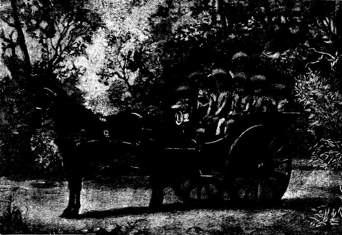 The party was ready for the start, and the precautions they took even before they were clear of the shadow of the wood-shed told that they did not intend to lose any game by carelessness. Tim and Bobby went in advance, leading Tip, who did not make the slightest effort to get away, and followed by Bill Thompson, carrying his gun in one hand and his knife in the other. Then came the remainder of the party, near or at a distance, as their fear of bears was much or little.