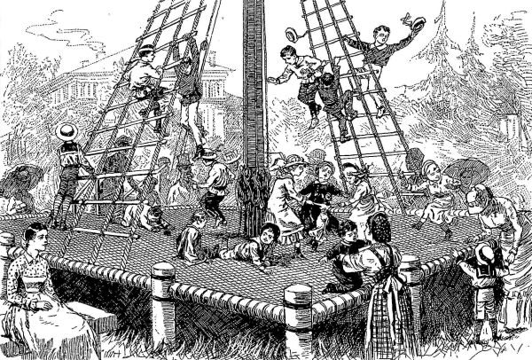 The march to the edge of the grove was necessarily a slow one, for Tip, finding that he was encouraged to run from one side of the path to the other, did so to his heart's content, while the boys expected each moment to see him start off like a race-horse, and were ready to spring at once to the aid of Tim and Bobby.