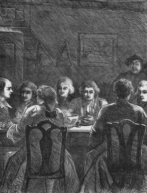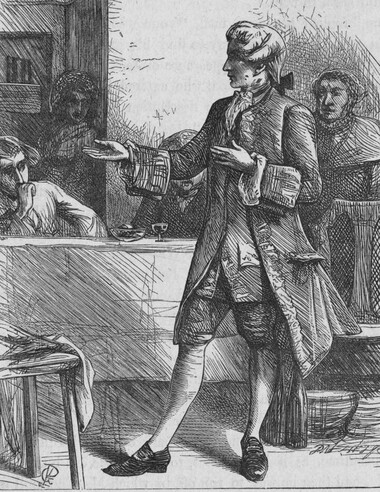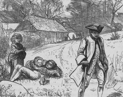 The place of our retreat was in a little neighbourhood, consisting of farmers who tilled their own grounds, and were equal strangers to opulence and poverty. As they had almost all the conveniences of life within themselves, they seldom visited towns or cities in search of superfluities. Remote from the polite, they still retained the primeval simplicity of manners; and, frugal by habit, they scarcely knew that temperance was a virtue. They wrought with cheerfulness on days of labour; but observed festivals as intervals of idleness and pleasure. They kept up the Christmas carol, sent true-love knots on Valentine morning, ate pancakes on Shrovetide, showed their wit on the first of April, and religiously cracked nuts on Michaelmas-eve. Being apprised of our approach, the whole neighbourhood came out to meet their minister, dressed in their finest clothes, and preceded by a pipe and tabor; a feast also was provided for our reception, at which we sat cheerfully down; and what the conversation wanted in wit was made up in laughter.