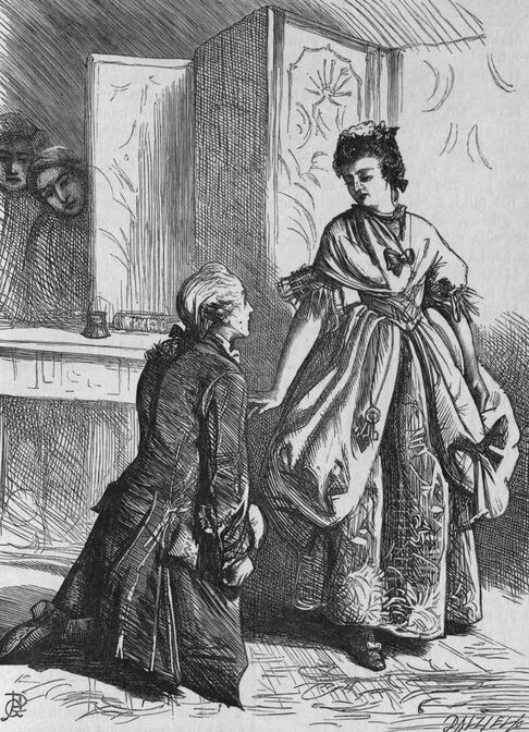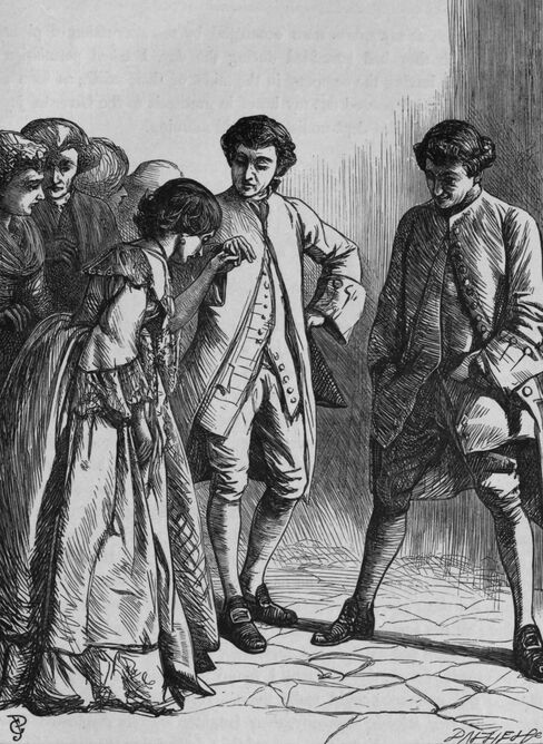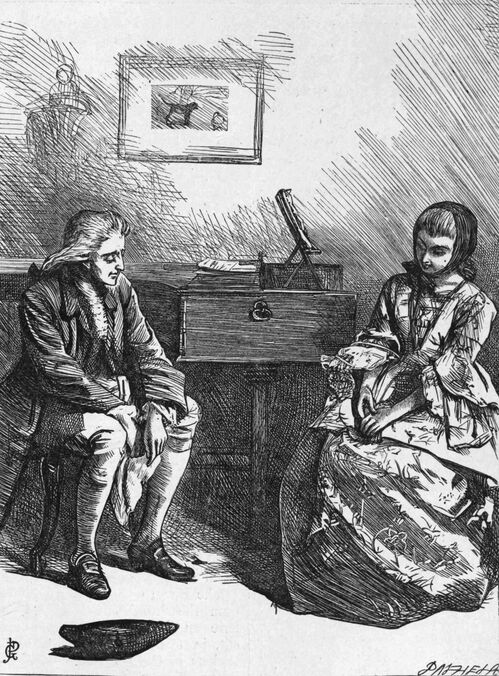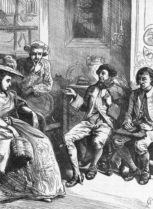 "Distressed, but not discouraged at this treatment, he was at last resolved to find that assistance from love, which he could not have from friendship. Miss Jenny Dismal had a fortune in her own hands, and she had already made all the advances that her sex's modesty would permit. He made his proposal, therefore, with confidence, but soon perceived, 'No bankrupt ever found the fair one kind.' Miss Jenny and Master Billy Galoon were lately fallen deeply in love with each other, and the whole neighbourhood thought it would soon be a match.