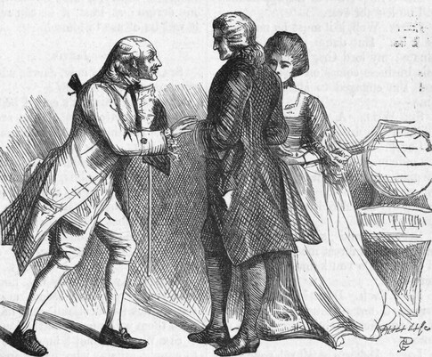 And now our poet resolved to try his powers in a new field—to write a comedy, the remuneration for which should pay off the debts that were fast accumulating round him. But here fresh vexation and new care awaited him. Garrick, the great actor and prosperous manager, to whom he offered the play, took upon himself the office of critic and emendator, authoritatively suggested the entire omission of Lofty, one of the best characters, and, to use an expressive vulgarism, seemed inclined to "burke" the comedy altogether. Goldsmith, smarting under the actor's patronizing criticism, became angry, refused to alter or amend the play, and finally took the manuscript out of Garrick's hands, and transferred it to the rival management of Colman at Covent Garden. But Colman, though he accepted the piece, had little or no hope that it would be a success; and he contrived to impart his own doubts and misgivings to the whole company. The fact was, that, at this period, sentimental comedy, showing men and women as they appear in the pages of novelists of a certain school, but not as they walk and talk in real life, was in the ascendant; and Hugh Kelly—a man with some ingenuity, but without a spark of genius—was the great representative of this school of writing. Now Goldsmith held that a comedy should be comic—that it should, above all things, amuse the spectators by humourous dialogue and startling action; and, in his dramatic creed, the enunciation of moral platitudes had no place. In fact, the lines Goldsmith afterwards wrote concerning Cumberland, Kelly's successor in the Sentimental School of Comedy, might well have been applied to Kelly himself: