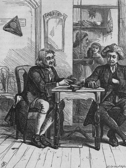 The Rev. Charles Goldsmith seems to have possessed, in a very large degree, certain traits of character by which all the Goldsmiths were more or less distinguished. Almost culpably careless in worldly matters, his easy good-nature and kindly generous disposition frequently made him the dupe of the designing and ungrateful. Himself incapable of cunning and deceit, he imagined that all men were frank and open. The last man in the world to take an unfair advantage of his neighbour, he never suspected that any man could possibly take advantage of him. Goldsmith himself under the guise of the Man in Black, gives us an insight into affairs at the Rectory in these early days. "My father's education," the Man in Black tells us, "was above his fortune, and his generosity greater than his education." Then we hear of numerous guests entertained at the hospitable parson's table, and paying for their dinner by laughing at the host's oft-repeated jests and time-honoured anecdotes. "He told the story of the ivy tree, and that was laughed at; he repeated the jest of the two scholars and one pair of breeches, and the company laughed at that; but the story of Taffy in the sedan chair was sure to set the table in a roar; thus his pleasure increased in proportion to the pleasure he gave; he loved all the world; and he fancied all the world loved him. We were told that universal benevolence was what first cemented society; we were taught to consider all the wants of mankind as our own; to regard the human face divine with affection and esteem; he wound us up to be mere machines of pity, and rendered us incapable of withstanding the slightest impulse made either by real or fictitious distress; in a word, we were perfectly instructed in the art of giving away thousands before we were taught the more necessary qualifications of getting a farthing."