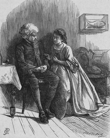 But the wish to relieve was so largely in excess of the power, that frequently when Justice called to present a claim for payment Generosity had been beforehand, and had carried away the money; and Justice had to wait, or, alas, in too many cases, to go away unsatisfied. Thus the most humiliating position in which Goldsmith was ever placed in the days of his direst poverty, arose from his hastily obeying an impulse to relieve the landlord of his miserable lodgings, who had been arrested for debt, and whose wife came to Goldsmith, weeping and wringing her hands. Thinking only how he could liberate the poor man by the only means in his power, the poet rushed off and pledged some books, and a suit of clothes, procured on the credit of Ralph Griffiths, a bookseller, that Goldsmith might appear decently at an examination, which he failed to pass, and dire was the wrath of Griffiths on the occasion.