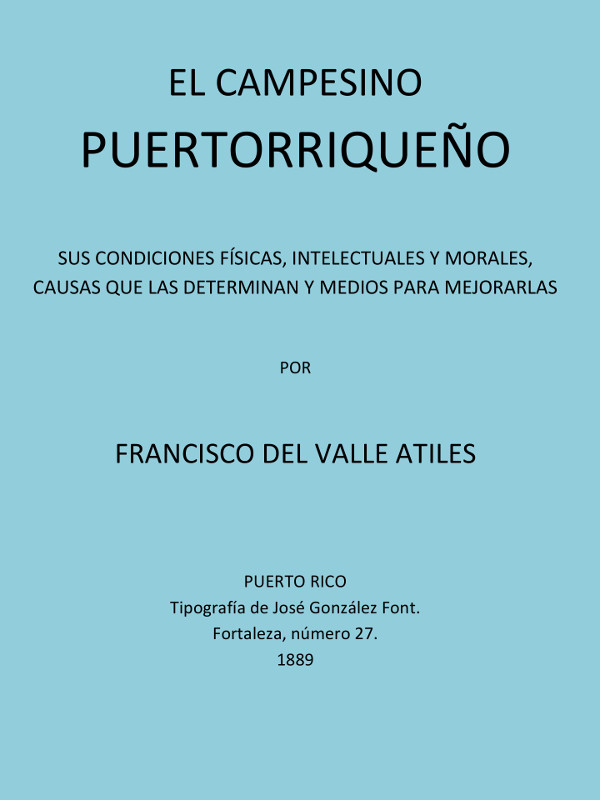 La Junta Directiva del Ateneo de Puerto Rico ha tenido á bien someter á estudio la interesante cuestión de El campesino puertorriqueño. Nosotros, más que por otro motivo, por sernos simpático el asunto, cuando el Certámen se anunció resolvimos redactar esta Memoria; pero algunas circunstancias individuales nos obligaron á suspender el trabajo, cuando aun no llegaba á la mitad. Sólo después de prorrogado el plazo de admisión por acuerdo del Ateneo, reanudamos la tarea comenzada, y la hemos seguido con una precipitación que, si no puede servir de disculpa [8] á la deficiencia de este trabajo, servirá por lo ménos como excusa de su desaliño.