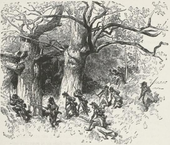 Suddenly the soldiers of this little advanced guard received that shock familiar to hunters, which shows them that they are close upon the lair of their prey. They heard something like breathing in the middle of the thicket, and it seemed as if they caught sight of some commotion among the leaves. The soldiers made signs to each other.