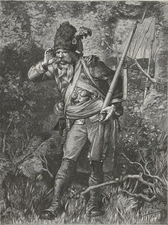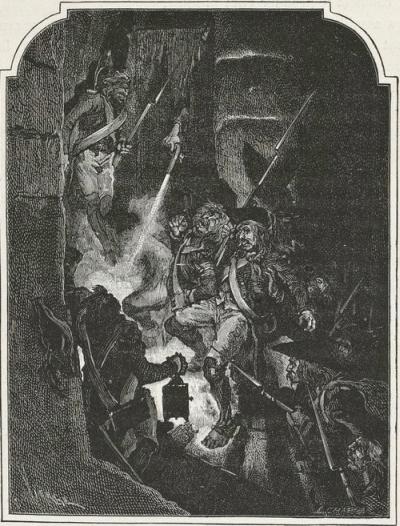 Thirty grenadiers, detached as scouts and commanded by a sergeant, marched ahead, at a considerable distance from the main body. The vivandière of the battalion accompanied them. The vivandières like to join the vanguard; they run risks, but then they stand a chance of seeing something. Curiosity is one of the forms of feminine courage.