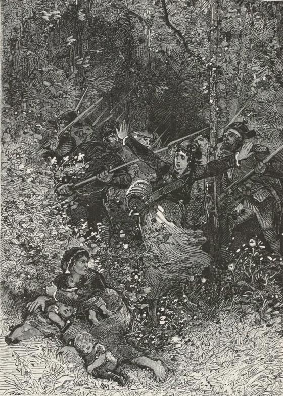 And turning to the soldiers, "Do not fire!" she cried, and rushed into the thicket, followed by the men.