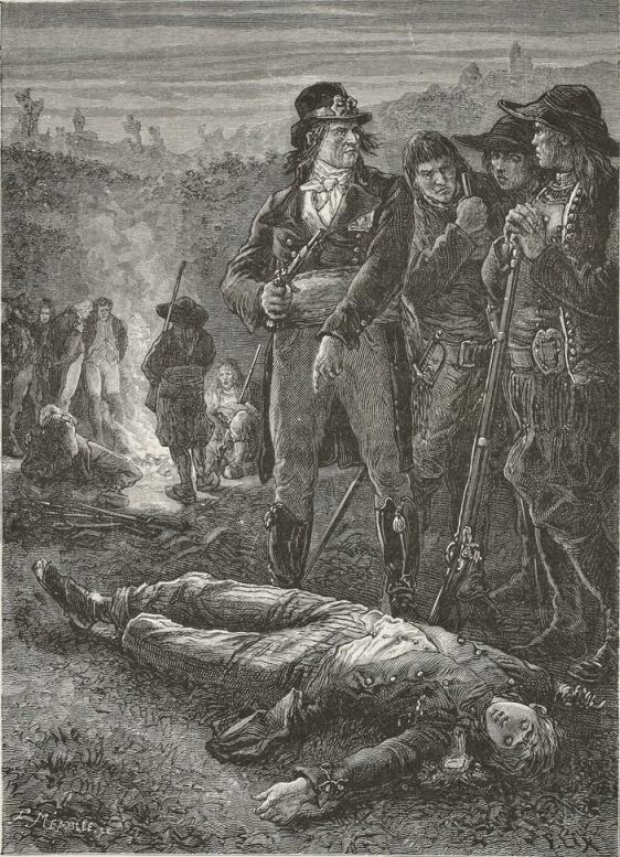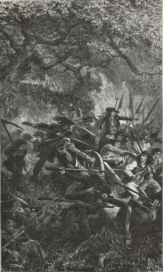 During the last days of May, 1793, one of the Parisian battalions introduced into Brittany by Santerre was reconnoitring the formidable La Saudraie Woods in Astillé. Decimated by this cruel war, the battalion was reduced to about three hundred men. This was at the time when, after Argonne, Jemmapes, and Valmy, of the first battalion of Paris, which had numbered six hundred volunteers, only twenty-seven men remained, thirty-three of the second, and fifty-seven of the third,—a time of epic combats. The battalion sent from Paris into La Vendée numbered nine hundred and twelve men. Each regiment had three pieces of cannon. They had been quickly mustered. On the 25th of April, Gohier being Minister of Justice, and Bouchotte Minister of War, the section of Bon Conseil had offered to send volunteer battalions into La Vendée; the report was made by Lubin, a member of the Commune. On the 1st of May, Santerre was ready to send off twelve thousand men, thirty field-pieces, and one battalion of gunners. These battalions, notwithstanding they were so quickly formed, serve as models even at the present day, and regiments of the line are formed on the same plan; they altered the former proportion between the number of soldiers and that of non-commissioned officers.