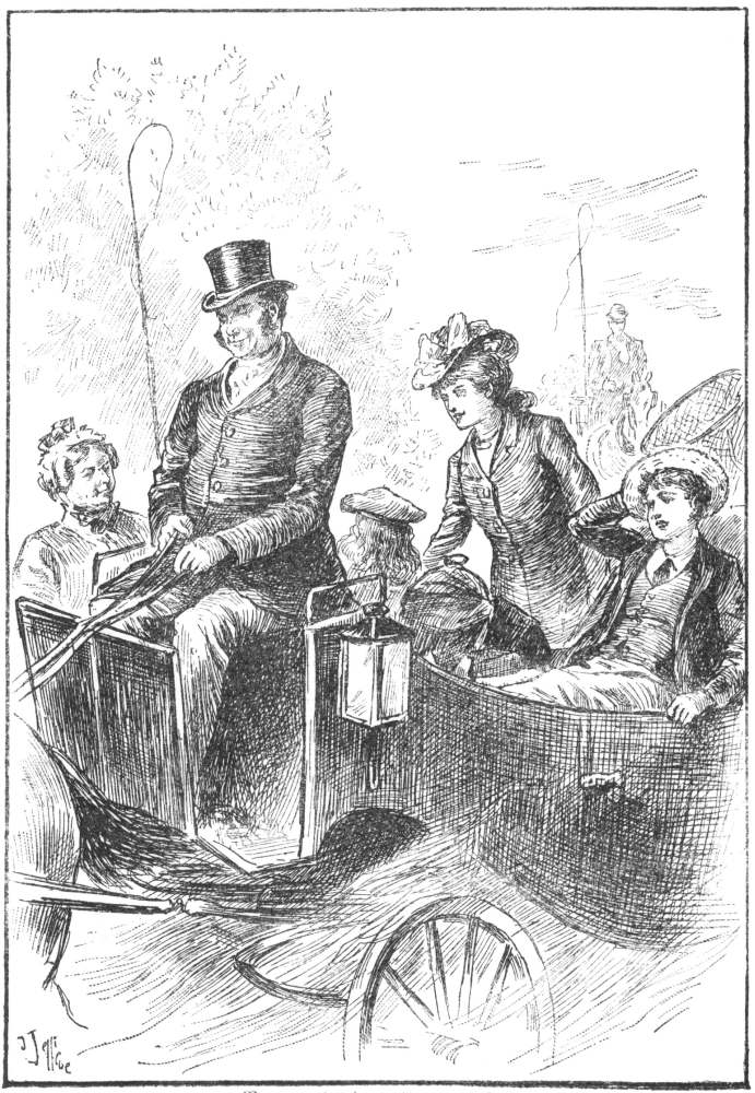 By this time the two flies had been drawn up behind each other, and such was the general bustle and tumult of the alighting that when the last of the “awfully good lot” had actually descended from the carriage, Mrs. Busson found herself holding her head with both hands, in order to make sure that it was still in its place.