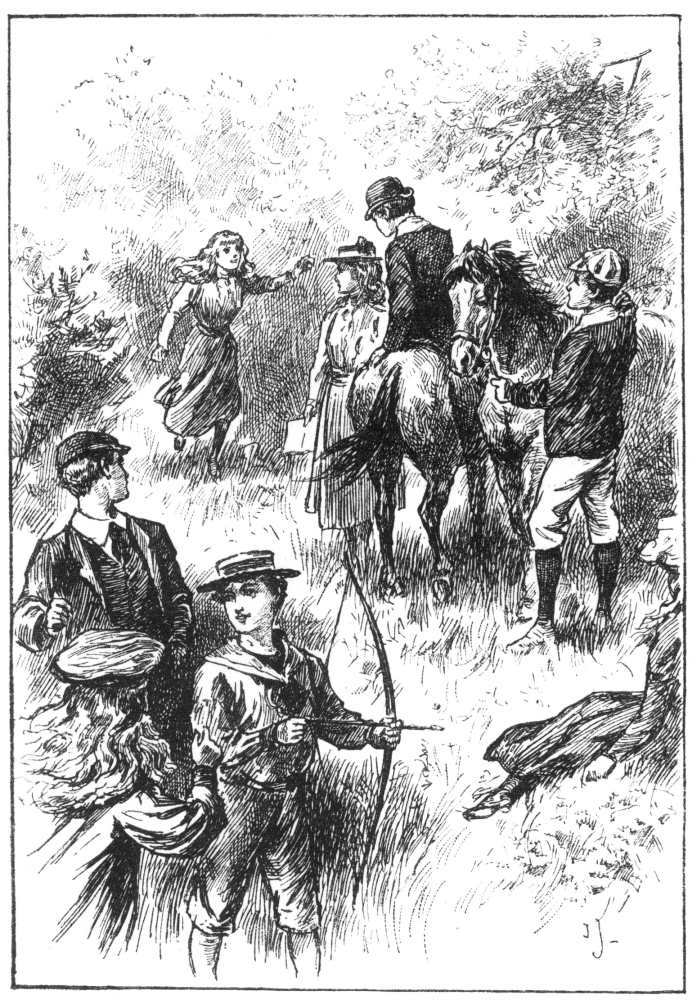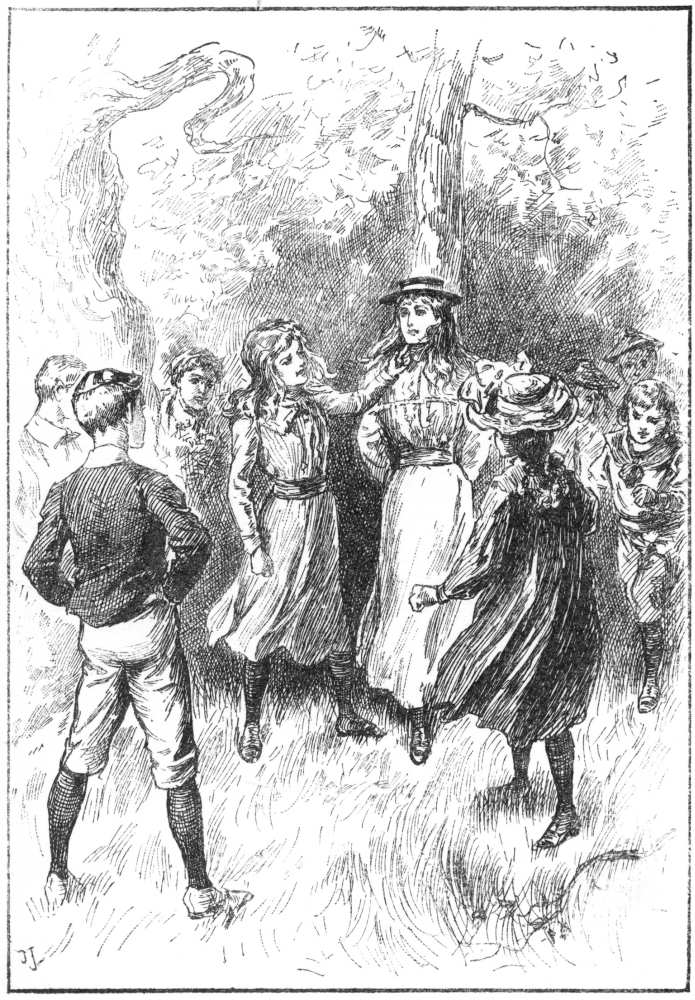 “Here, hurry up, Miss Annie,” cried Phil, coming to the door of the first fly; “don’t you see that your old go-cart’s stopping the way? I say, can’t you give a hand to Faith and help her with all that pile of rubbish? You don’t mean to tell me that she’s been nursing that bowl of gold-fish all the way from the station?”