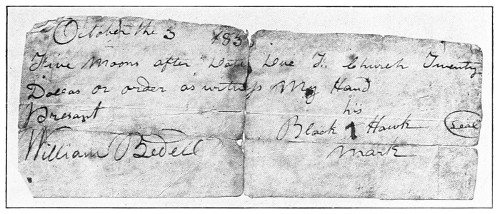 | Black Hawk’s Promissory Note. From the original, owned by Mrs. Fannie Anderson, of Louisiana, Mo. Unpaid. | 272 |