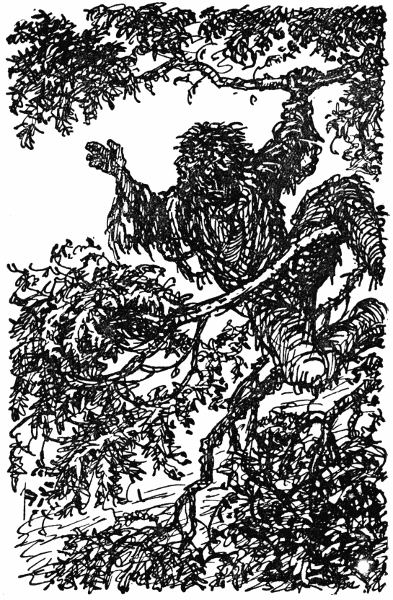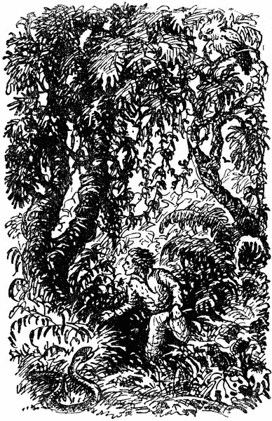 Ich kann gar nicht sagen, wie dieser geheimnisvolle Mensch mich in meine Träume hinein verfolgte. In stürmischen Nächten, wenn der Wind das Haus erschütterte und die Brandung gegen Bucht und Klippen brauste, erblickte ich ihn in tausend Gestalten und in tausendfältigen, teuflischen Formen. Einmal war das Bein am Knie abgeschnitten, einmal an der Hüfte, dann wieder erschien er mir als ein Fabelwesen, das immer nur ein Bein gehabt hatte, und zwar in der Mitte des Körpers. Ihn hüpfen[S. 14] und springen zu sehen und von ihm über Stock und Stein verfolgt zu werden, war mein entsetzlichster Angsttraum. Und das Vierpennystück war teuer genug erkauft mit diesen Gesichten.